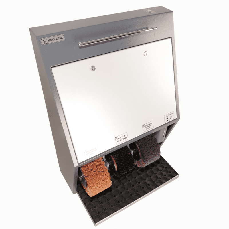 Устройство комплектуется двумя широкими щётками полировки – для светлой и темной обуви и жесткой щёткой для предварительной очистки.