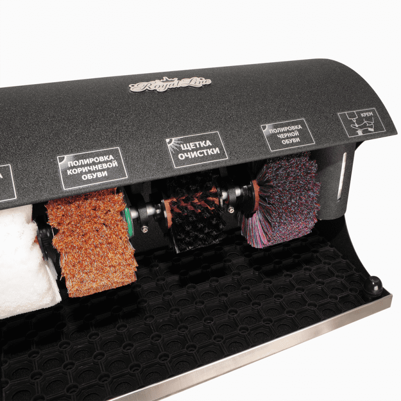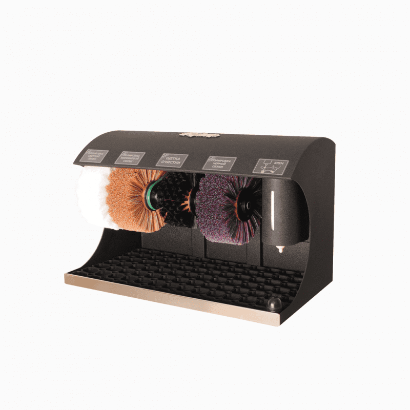 Устройство комплектуется тремя щётками полировки – для светлой, черной и коричневой обуви и жесткой щёткой для предварительной очистки.