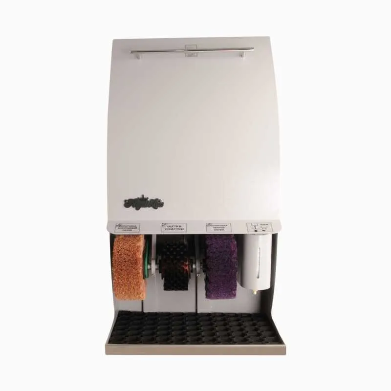 Устройство комплектуется двумя щётками полировки – для светлой и темной обуви и жесткой щёткой для предварительной очистки.