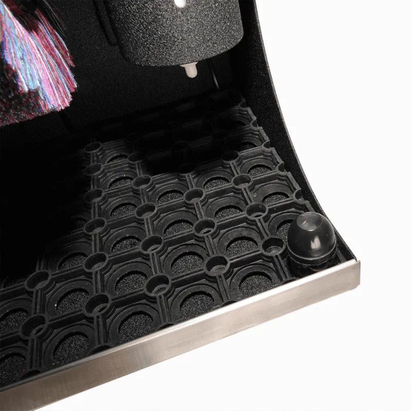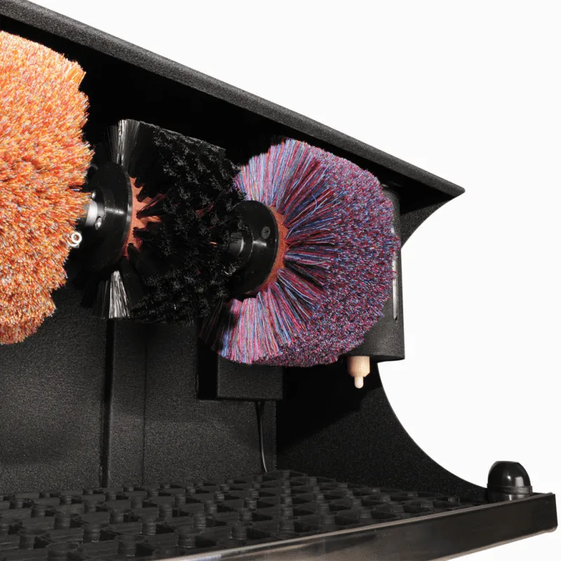 Устройство комплектуется тремя щётками полировки – для светлой, черной и коричневой обуви и жесткой щёткой для предварительной очистки.