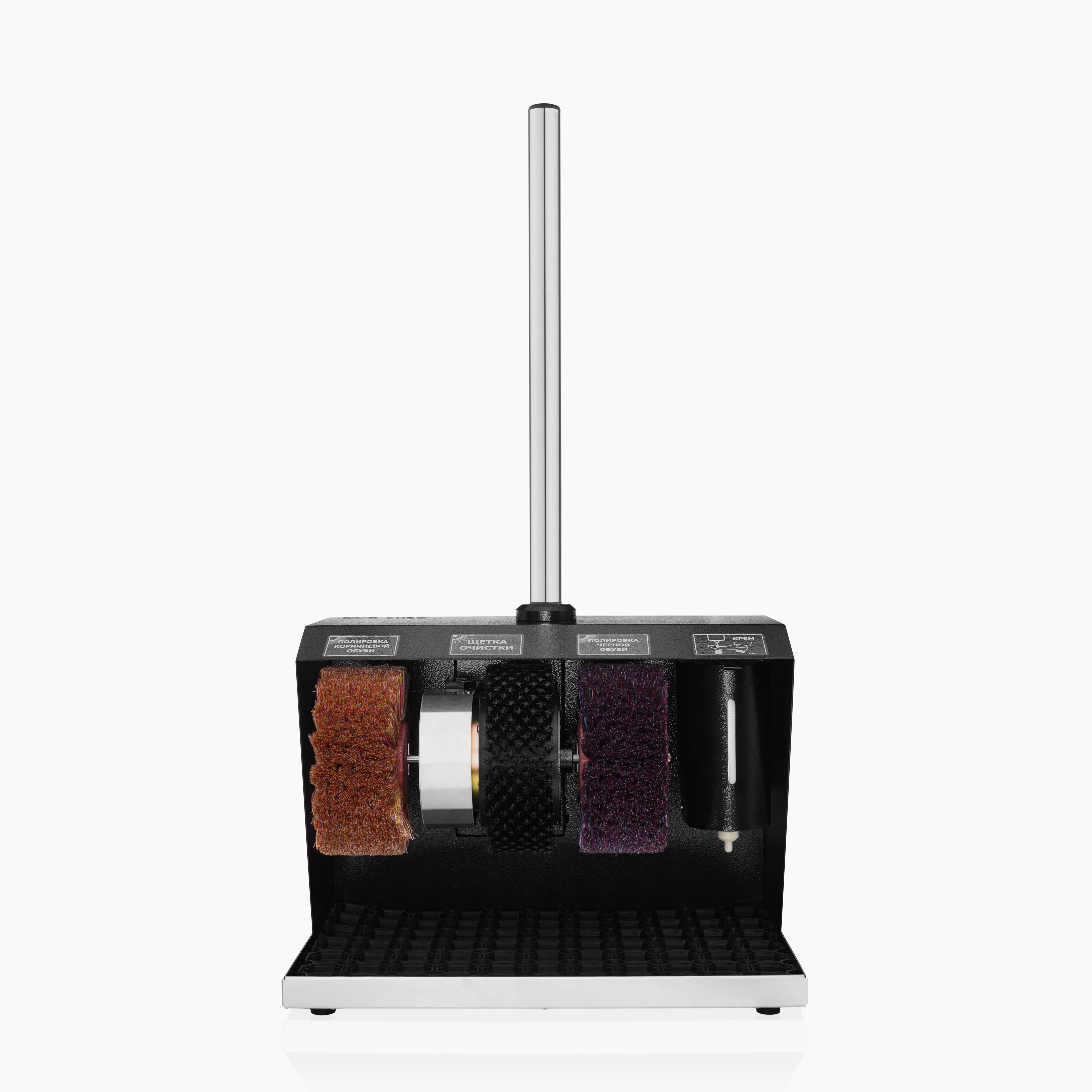 Устройство комплектуется двумя щётками полировки – для светлой и темной обуви и жесткой щёткой для предварительной очистки. По вашему желанию мы бесплатно окрасим аппарат в любой цвет из представленных в конфигураторе палитр.